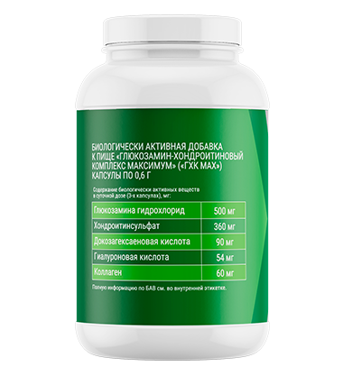 In addition to glucosamine and chondroitin it contains methylsulfonylmethane and Boswellia extract, which slow down the processes of cartilage destruction and activate the recovery processes.